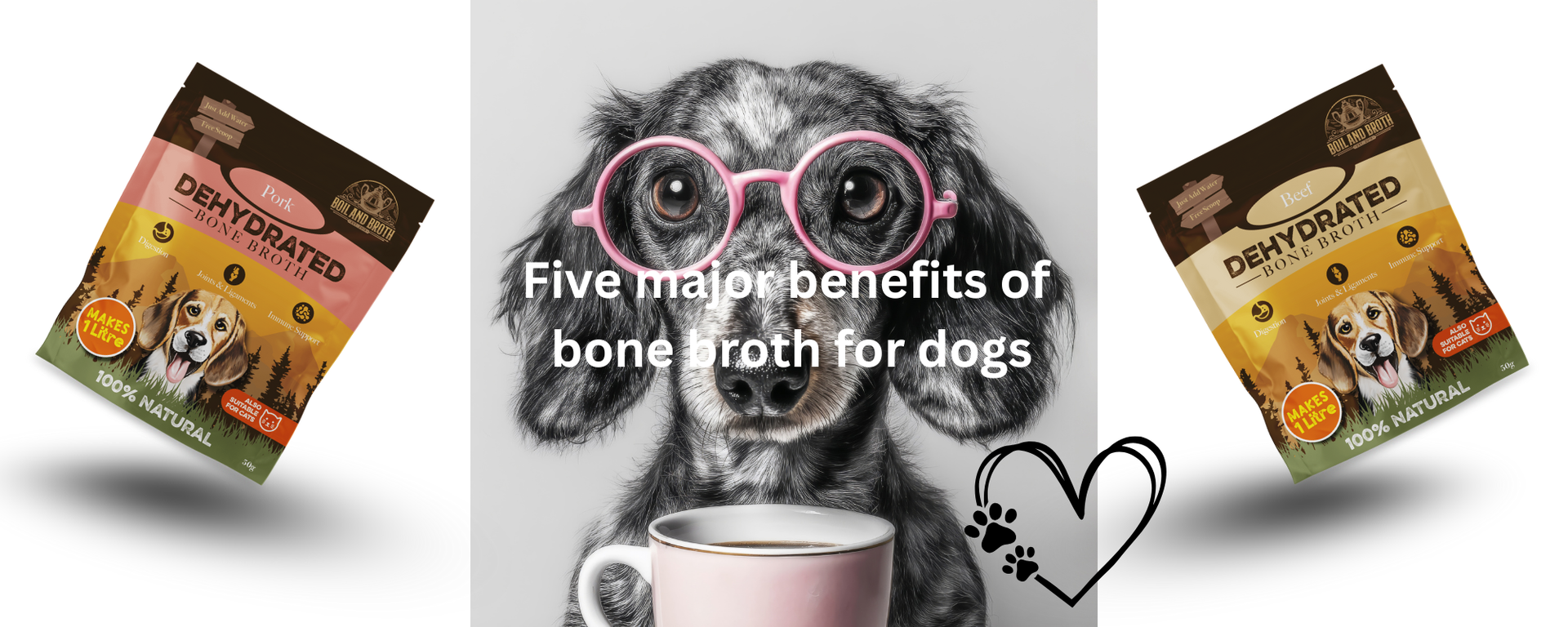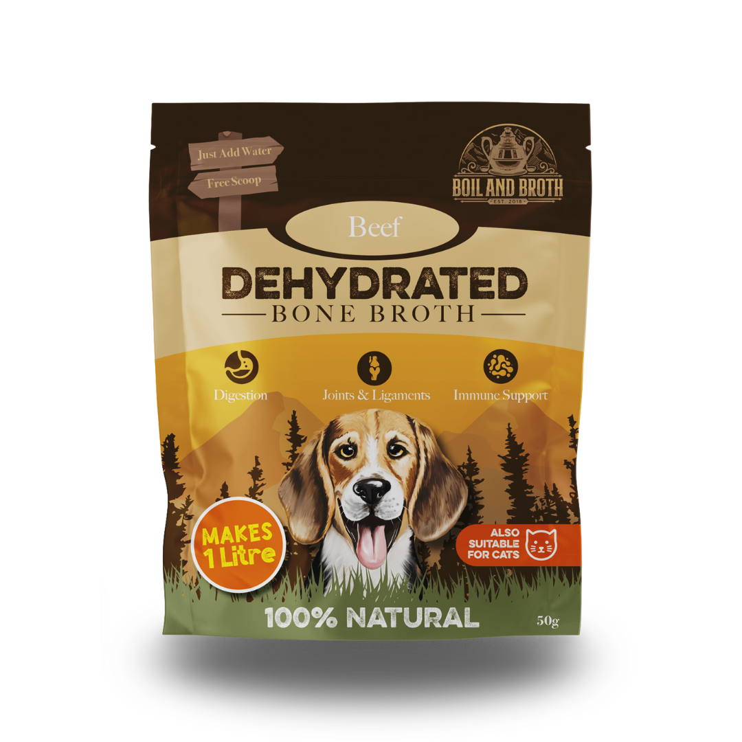 Read on to learn the Five Major Benefits of Bone Broth for dogs. Bone broth has been used for centuries as a natural healing food, and in recent years it has become increasingly popular in the pet world. At Boil and Broth, we believe in feeding dogs the way nature intended – with simple, nourishing, real food. Our dehydrated bone broths are made from British bones, gently cooked to extract powerful nutrients, then dried for long shelf life and easy use.