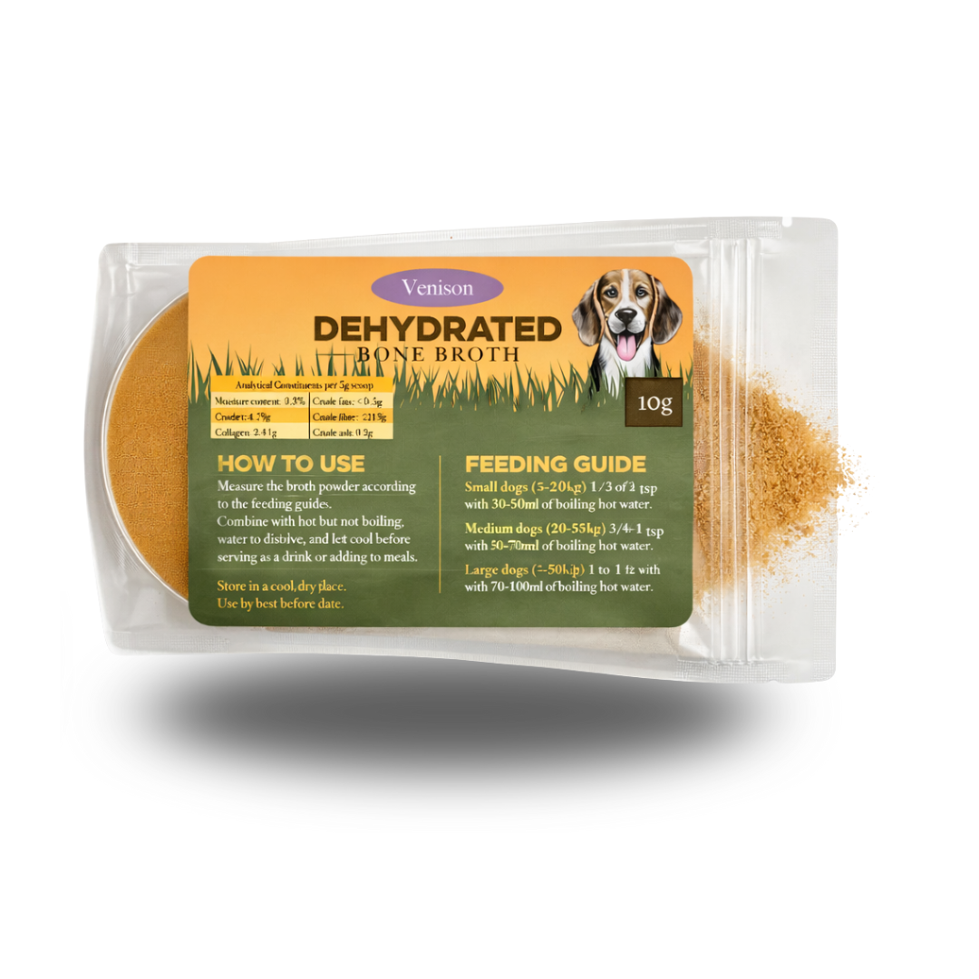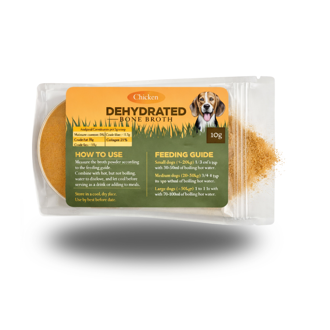 Your dog’s gut health affects almost every part of their body – from immunity and energy levels to skin, coat, and behaviour. Bone broth is naturally rich in gelatin, collagen, and amino acids like glutamine and glycine, which help soothe and repair the gut lining.