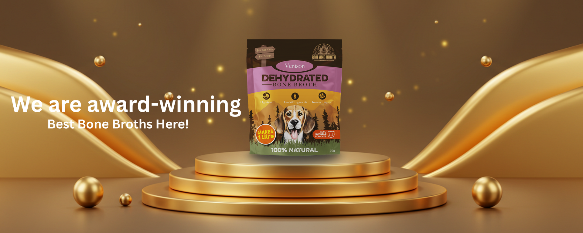At Boil and Broth, we are proud to be an award-winning British brand, recognised for our commitment to natural, high-quality pet nutrition and our growing international presence. Our products are trusted by pet owners, professionals, and distributors across the UK and overseas, and our dedication to innovation, science-led formulation, and ethical manufacturing has been acknowledged by leading industry bodies.