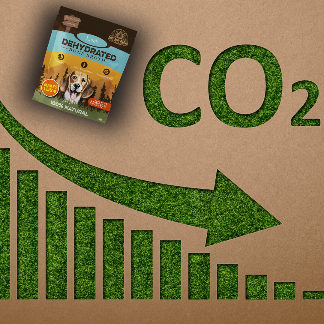 We also know that traditional bone broth can be energy-intensive to produce, ship and store, especially when sold as a liquid requiring refrigeration. That’s why we dehydrate our broths, removing the water makes them lighter to transport and removes the need for cold storage, dramatically reducing carbon emissions associated with shipping.