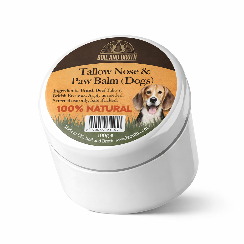 Our commitment extends beyond broth. We also repurpose nutrient-rich tallow, another by-product of butchery, in our range of tallow-based skincare products designed for both dogs and humans. This means fewer valuable natural fats are wasted and more of the animal is used in ways that benefit health and wellbeing.