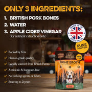 British pig bones, water, apple cider vinegar (processing ingredient only) – dehydrated.