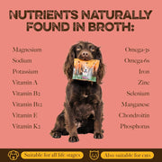Caution must be taken when introducing any new supplements to your dog’s diet if they have CKD. Always consult with your vet. We do recommend small amounts of broth for dogs with CKD. Broth is great for gut health, so giving your dog 10ml of rehydrated broth daily can help support their gut health and keep them hydrated.